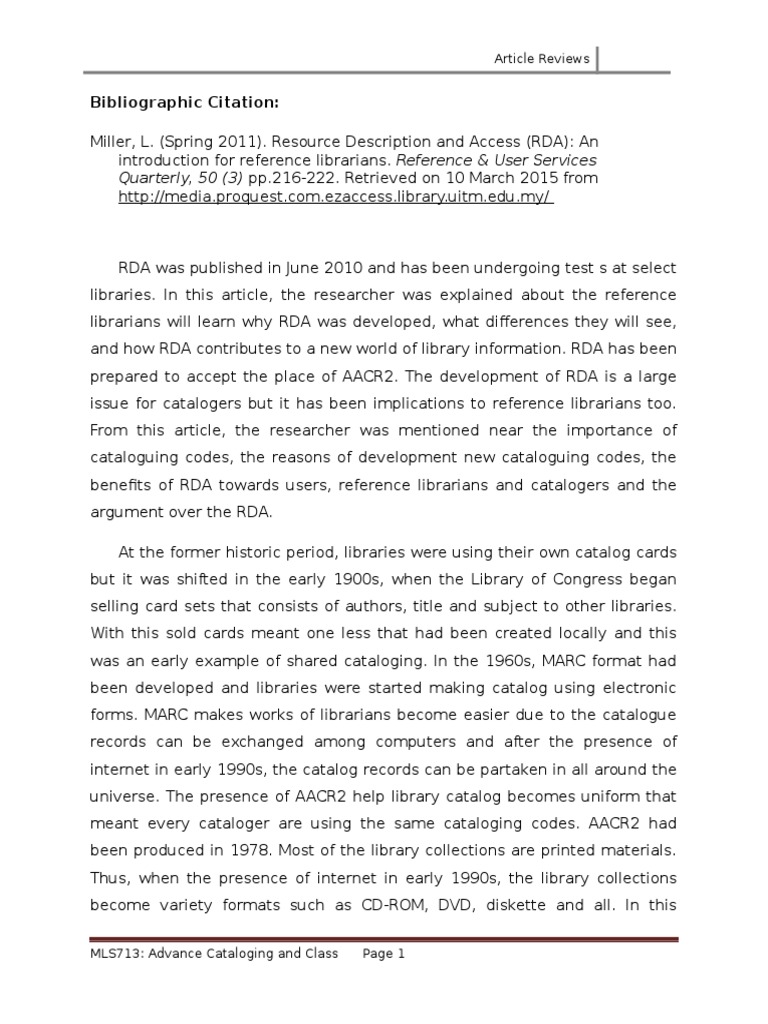 Article Review Rda And Fbrb Pdf Cataloging Librarian